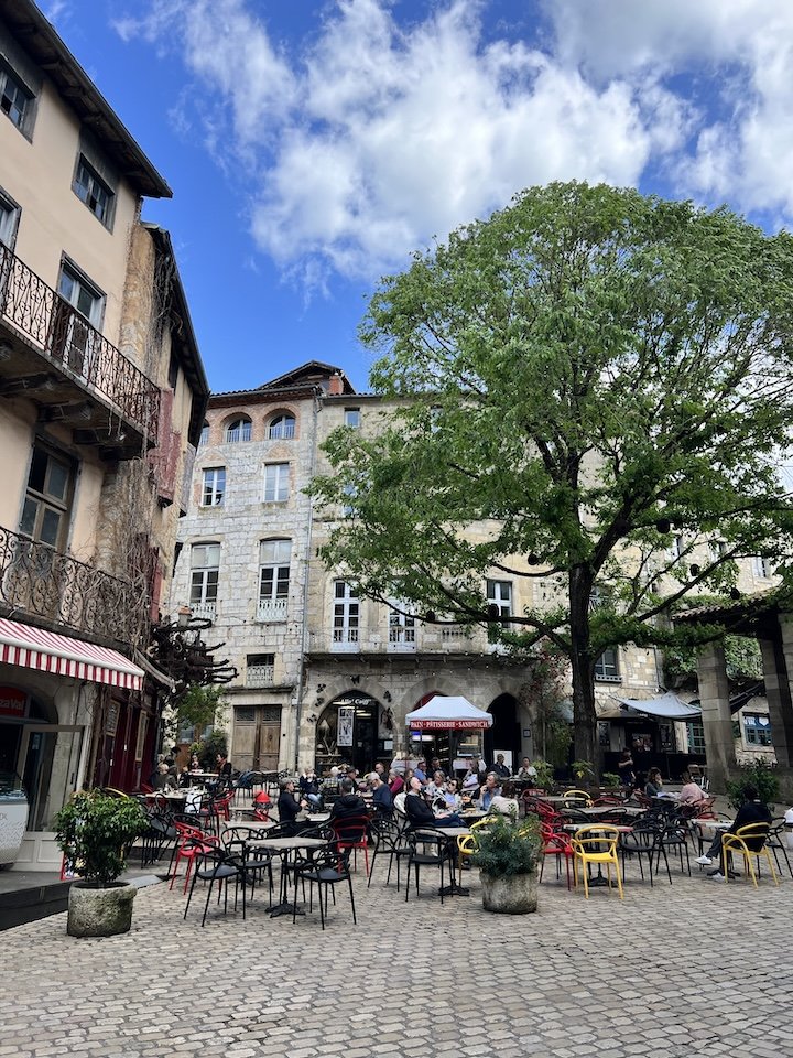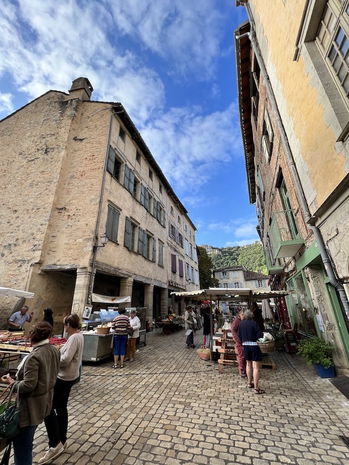 Stopping in Saint-Antonin, we lucked out and arrived on a lively market day—farmers’ stalls overflowing with local produce and artisanal goods, and an accordionist setting the scene from a nearby café. It was the kind of place that almost felt cliché, like it was all just a little too perfect.